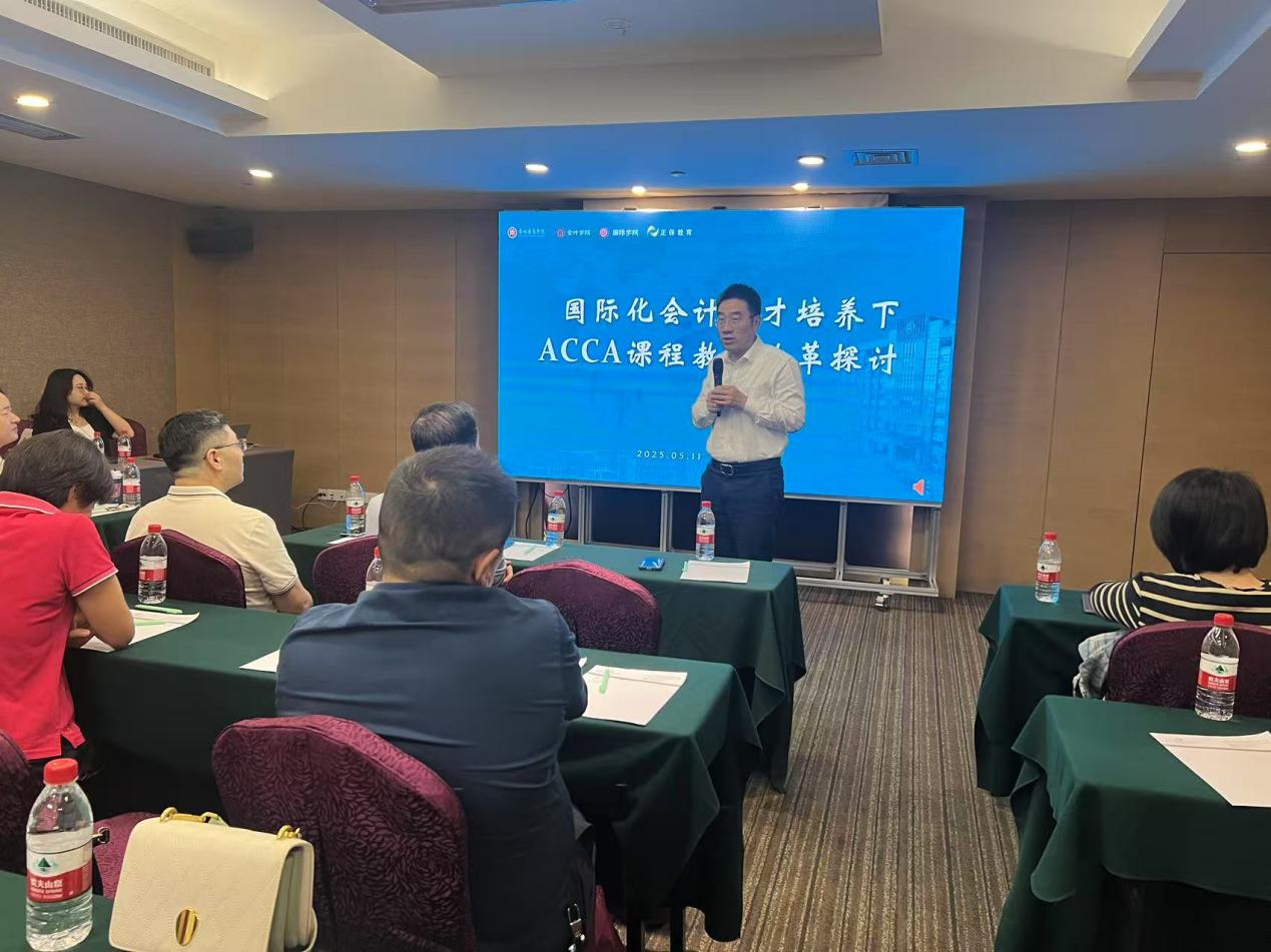 姚凤民教授进行开幕致辞,他强调学校对 ACCA 人才培养、课程教学改革以及 ACCA 教师团队建设的高度重视。在致辞中,姚院长深刻指出,随着经济全球化的加速,培养具有国际视野、精通国际会计准则的会计人才已成为当务之急。学校将持续加大对 ACCA 教育的投入,为师生创造更好的教学与学习环境。