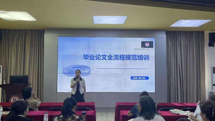 接下来由会计学专业负责人朱小云副教授以“毕业论文全流程规范培训”为题对全体参会教师进行了论文规范培训。本次培训主要围绕以下三个内容:一是从选题核心原则、拟题指导实操技巧等方面,对论文选题拟题进行了详细分析,力争精准锁定研究靶心;二是对开题报告研究背景及意义、文献综述、参考文献等方面进行了重点说明,规范写好开题报告、筑牢研究根基;三是从摘要、目录大纲、写作过程中常见的问题等方面,对论文正文撰写作了精彩分享,要求做到正文内容与格式双达标。参会教师现场反响热烈。