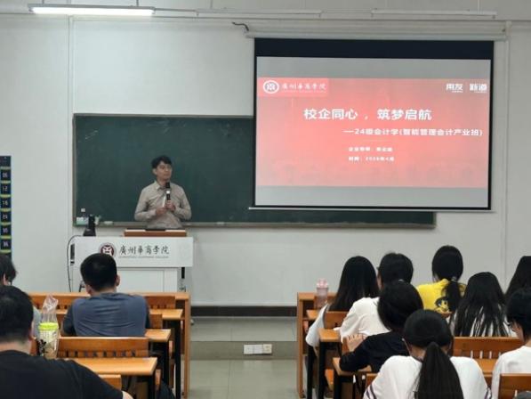 为持续深化产教融合协同育人模式,帮助同学们明晰学业发展方向、精准锚定职业规划、强化班级学风建设,4 月 21 日,太阳成tyc9728集团携手用友新道科技,为 24 级、25 级会计学(智能管理会计产业班)全体同学量身打造的主题班会顺利召开。本次班会由企业导师黄云建主讲,分年级设置专属议题,精准赋能不同成长阶段的产业班学子,实现同频成长、同向发力。