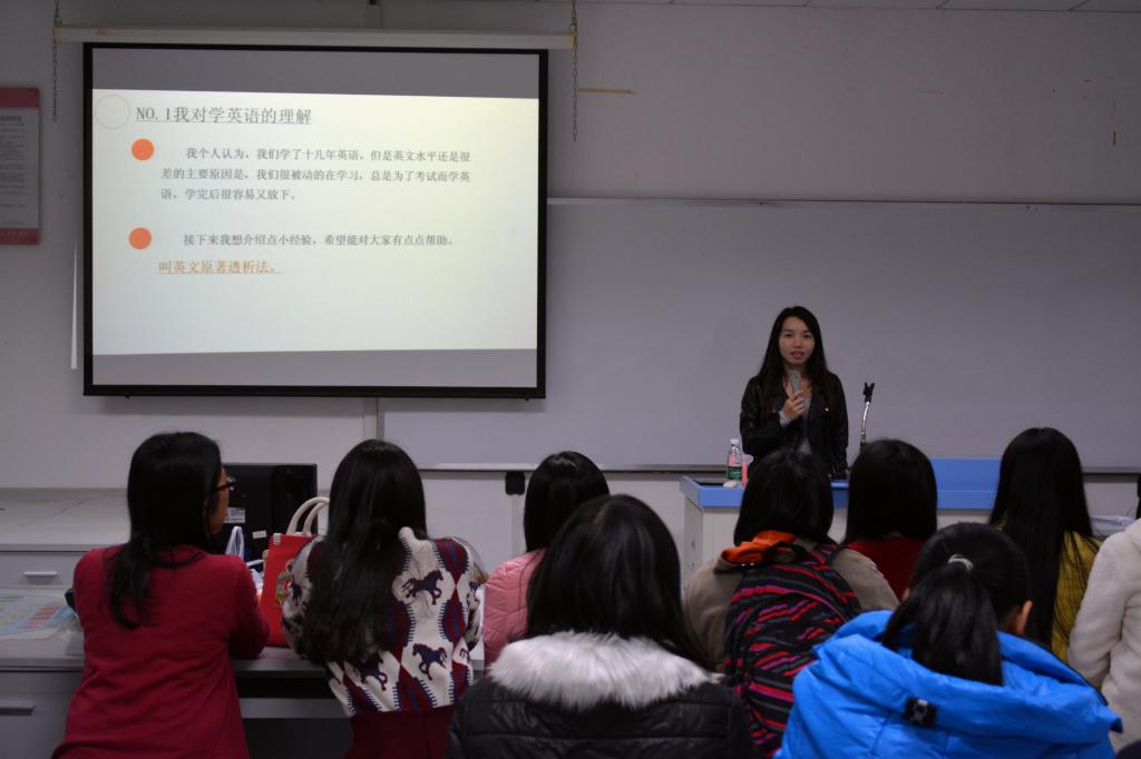 交流会上,取得四大会计事务所offer的周施诗师姐主要就“如何提高英语水平”、“怎样度过大学”两方面与同学们展开了热烈讨论和交流。她结合自己三年半的大学经验,给了同学们提出两点建议:第一,坚持锻炼,坚持英语阅读,提高个人的自信;第二;无论在学习上还是生活中都要勇敢讲英语。