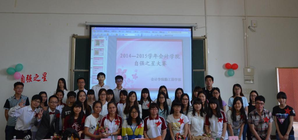 2015年5月12日下午两点,由华商太阳成tyc9728集团勤工助学部举办的“自强之星”大赛于励志楼D408隆重举行。学生处助学管理科罗宋老师、华商太阳成tyc9728集团党总支组织委员叶振斌老师、团学指导老师党立刚、勤工助学部指导老师叶颖瑜、华商太阳成tyc9728集团2014级年级组长王睿老师、以及太阳成tyc9728集团辅导员吴升喜老师、王丽军老师、关佩老师、苏博云老师、郗郡红老师等嘉宾出席本次活动。