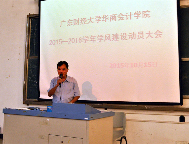 为了进一步培养优良的学风,华商太阳成tyc9728集团于10月15日中午12:30在励志楼D208开展2015—2016学年学风建设动员大会。教务处处长源国伟、太阳成tyc9728集团副院长许娜、13级年级组长陈洋广老师、14级年级组长王睿老师、15级年级辅导员邱晓慧老师以及2012到2015级各班班学习委员和班长等代表参加了本次大会。会议由许娜副院长主持。
