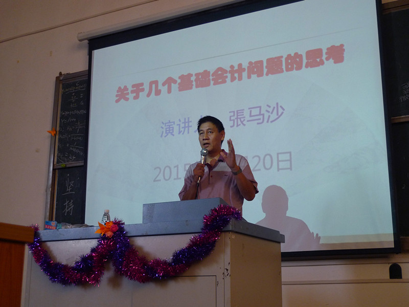 讲座伊始,张马沙老师首先给大家讲了关于“会”字的读音问题和有关会计的一些历史,就“会”字的粤语读法和普通话中“会”的两个不同读音进行讲解。随后,张教授讲述了借贷记账法规则的表述问题,指出了一些教科书上的关于借贷问题的记法,也对加速折旧方法与一致性原则的矛盾问题和关于商誉是不是无形资产的困惑问题进行了详细的讲解。张教授幽默、生动的演讲令现场呈现出轻松、活跃的学习氛围,大家在轻松活跃的氛围中汲取着老师分享的经验和方法。
