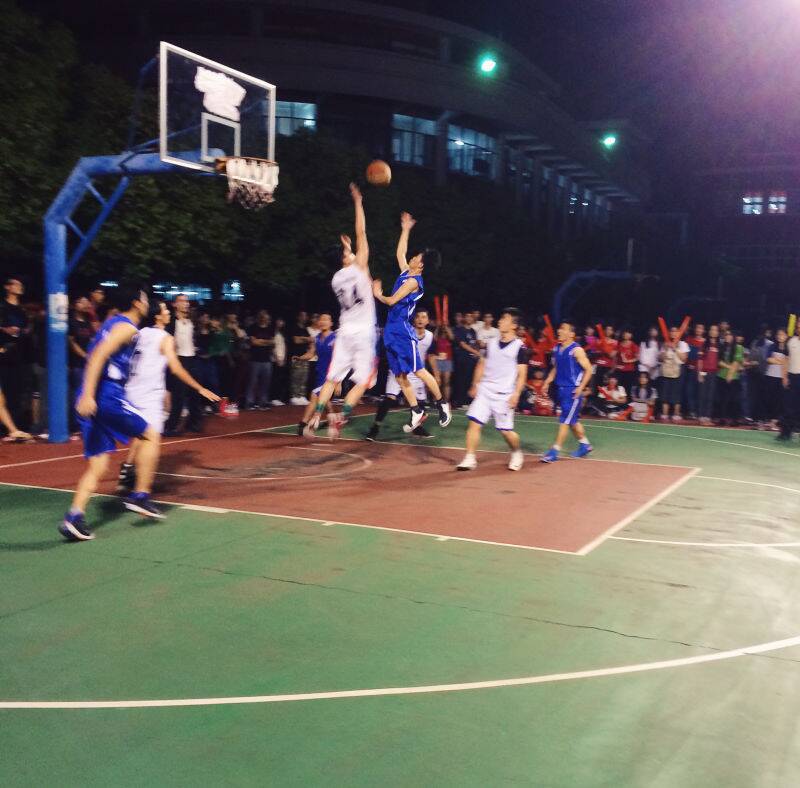 11月17日晚上7:00,太阳成tyc9728集团(蓝队)PK经济与金融系(白队)的篮球赛在明星饭堂后面的灯光篮球场开赛了。这是一场激烈的比赛。双方在赛中都互不相让,比分曾多次拉平。