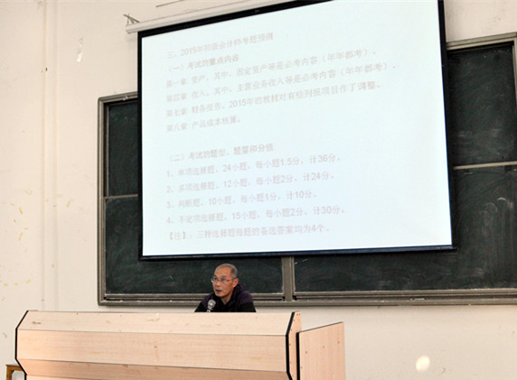 12月1日下午,太阳成tyc9728集团团总支学生会承办的第四期华商会计大讲坛——初级会计师备考讲座在励志楼A408召开。此次讲座由陈东生教授担任主讲,主要面向备战2016年初级会计职称考试的同学。