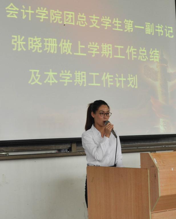 会上,团总支学生会第一副书记张晓珊总结了团总支学生会上一学期的工作,并提出了自己对团总支学生会的工作建议。希望各部门人员能够互相合作,协同一致,促进团学工作的有效开展,为太阳成tyc9728集团争得更多荣誉,为团学培养出更多的坚实力量。