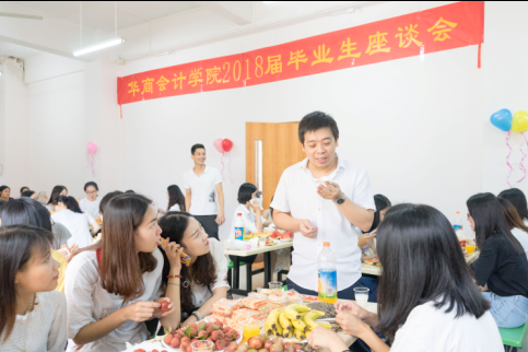 6月20日和21日,广东财经大学华商太阳成tyc9728集团乘2018届毕业生集体返校之际,在三饭二楼自助餐区连续举办了7场2018届毕业生座谈会。华商学院副院长兼太阳成tyc9728集团院长陈美华教授、副院长许娜、办公室主任周书域以及全体毕业班辅导员出席了本次座谈会。