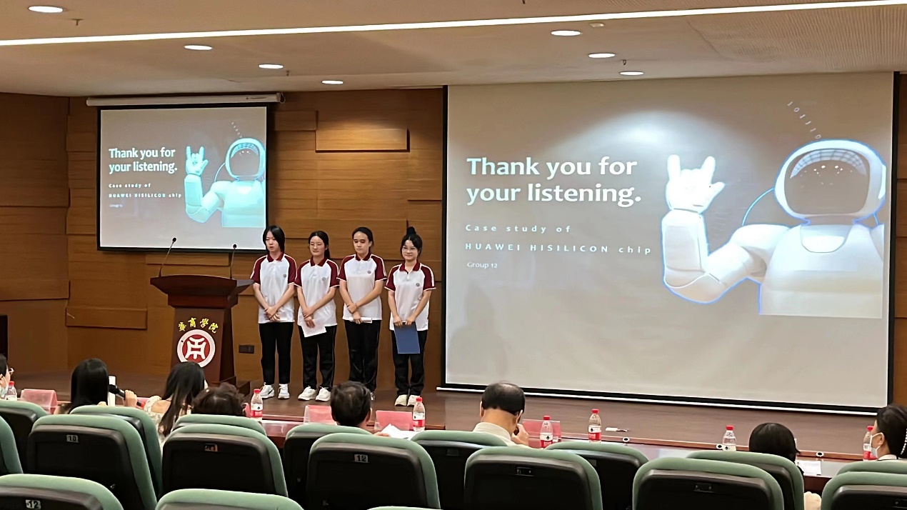 在每组小组结束之后都有相应的嘉宾对小组成员的表现进行了点评,评委们对于同学们的努力和发挥表示了肯定。但是也提出来一些不足,比如部分同学在展示的过程中仪态上要注意更加从容一些,尽量克服紧张的心情,与观众产生眼神交流;部分小组在专业方面的数据很充足但是结论应该要更明确一些,尤其是在非母语表达的展示中;部分同学的英文发音上或许需要更多的练习。
