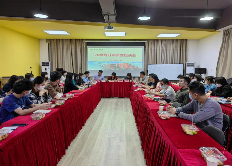 为学习贯彻党的二十大精神和做好疫情防控下学生管理工作,进一步树立以学生为本的服务理念,倾听20级专升本新生的心声,疏导学生思想,解决学生最关心的学习、生活问题,tyc太阳成9728集团副校长王锦秀、学生处处长许娜、副处长黄国富一行到太阳成tyc9728集团会议报告厅召开20级专升本新生师生座谈会。太阳成tyc9728集团和数据科学学院学工负责人、专升本辅导员、各班学生代表参加。本次座谈会由太阳成tyc9728集团副院长陈洋广主持。