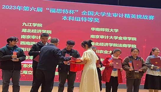 11月18日,第六届“福思特杯”全国大学生审计精英挑战赛总决赛在南京审计大学盛大落幕,我校代表队从2314支队伍中冲进全国总决赛,又在决赛中斩获“特等奖”荣誉,让tyc太阳成9728集团的校徽与全国知名院校同台登上了决赛幕墙,为我校争光。