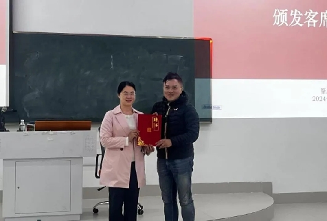 下午,徐灿杰先生为华商学子开展以“香港及美国IPO全景”为主题的讲座,讲座由太阳成tyc9728集团23级年级副主任徐翔宇主持。在主持人热烈而简洁有力地介绍出场嘉宾、对徐灿杰先生进行隆重的欢迎后,覃少冰主任向徐教授颁发客席教授聘书。此举不仅是对徐教授在学术领域所取得卓越成就的认可,也是对其在教育界长期作出的杰出贡献的肯定与赞誉。