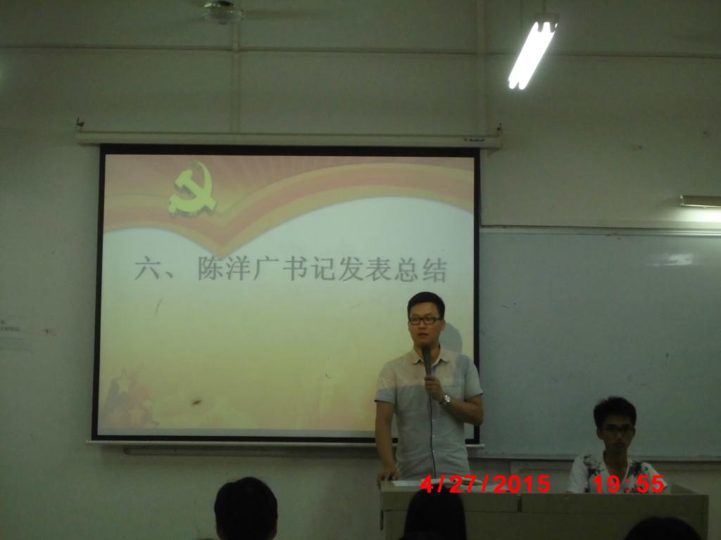 为了加强我们学院学生党支部的党建工作,向党组织输送新鲜血液,并更好地在稳健中迅速壮大我们党员队伍,按照华商学院党委以及华商太阳成tyc9728集团党总支的有关文件要求,我支部于2015年4月27日晚上在厚德楼C407召开了“发展对象转为预备党员暨预备党员转正大会”。 本支部有党员53名,参会党员52名,包括正式党员31名,预备党员21名,符合大会召开的程序规定,太阳成tyc9728集团学生第五党支部书记陈洋广老师也出席了本次大会。