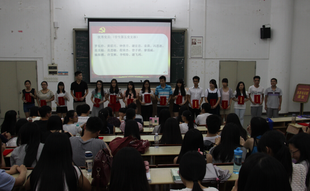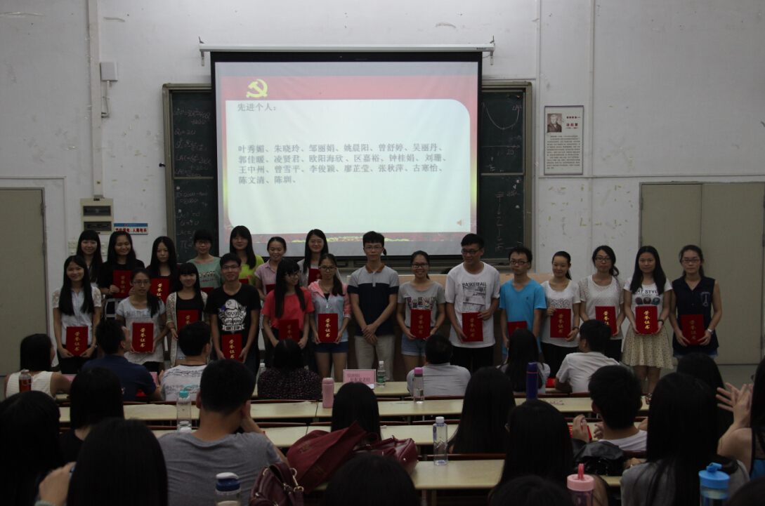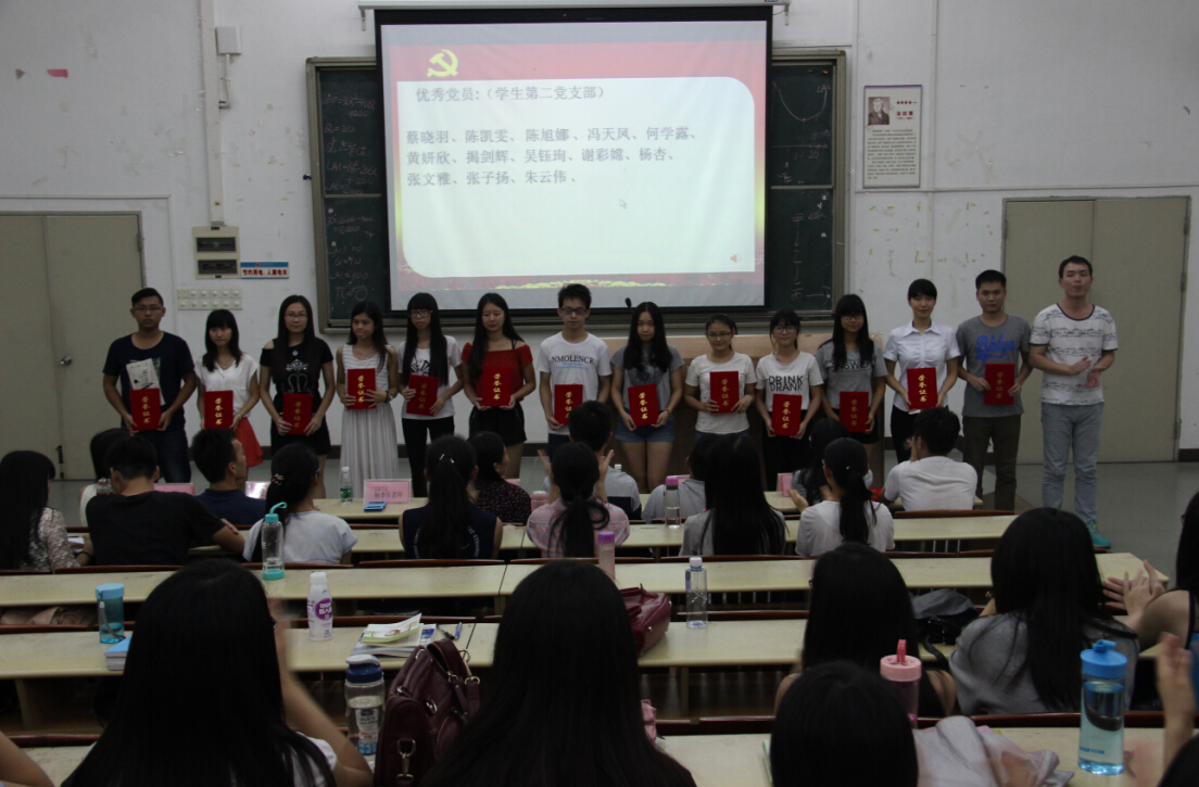 为表彰本学年在党总支举办的各项活动及开展的系列工作中表现优异、积极的党员同志,使其在党支部乃至全院学生中起到榜样作用,以推动今后我院各项工作的进一步展开,促进我院学生党员素质和特长的全面提高和展现,我院党总支于2015年6月25日在励志楼B307举办了“2014-2015年太阳成tyc9728集团党员表彰大会”会议。出席本次会议的嘉宾有太阳成tyc9728集团党总支副书记许娜老师、党总支组织委员叶振斌老师、学生第一党支部书记杨李军老师、学生第二党支部书记李冠恩老师及全体学生党员。
