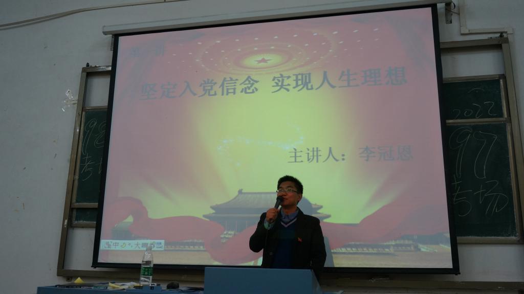 2015年12月20日早上8点30分,太阳成tyc9728集团学生第二党支部书记李冠恩老师在励志楼D208对本支部的全体党员上了一场精彩的党课。