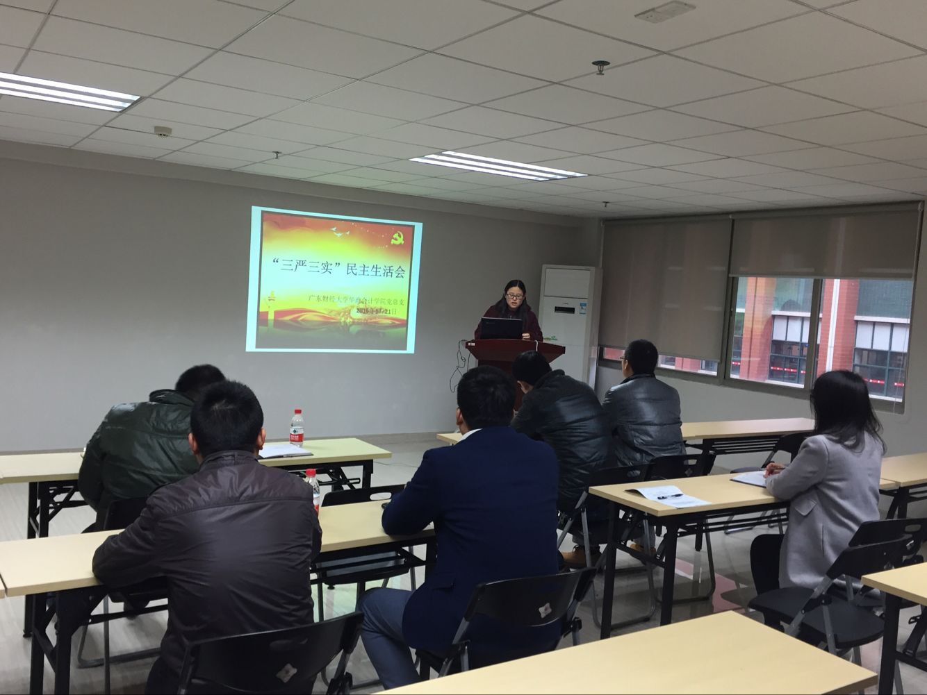 2016年1月21日下午,广东财经大学华商太阳成tyc9728集团围绕“严以修身、严以用权、演绎律己,谋事要实,创业要实、做人要实”主题,进行了集中学习研讨,党总支副书记许娜主持学习研讨,太阳成tyc9728集团党总支组织委员叶振斌、太阳成tyc9728集团教工党支部书记王敏、太阳成tyc9728集团教工党支部宣传委员关佩及学生第一党支部书记杨李军、第二党支部书记李冠恩、第三党支部书记袁善福、第四党支部书记陈洋广、第五党支部书记冯金兰等参加学习研讨。