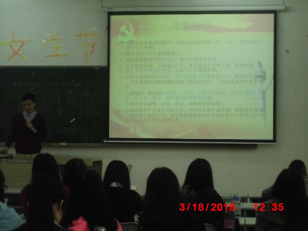 3月18日,太阳成tyc9728集团学生第三党支部在励志楼A203举行太阳成tyc9728集团学生第三党支部“入党积极分子党课动员大会”。参加本次会议人员有太阳成tyc9728集团学生第三党支部4名支委和各班入党积极分子共26人。本次会议由纪委曾林冠同志主持。