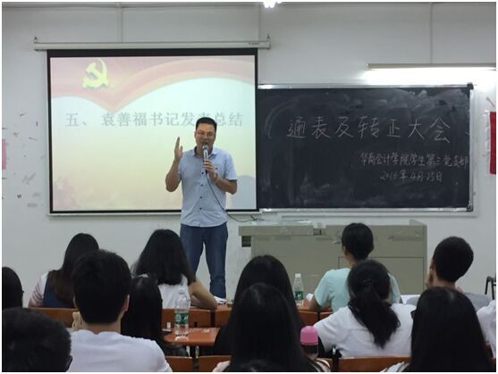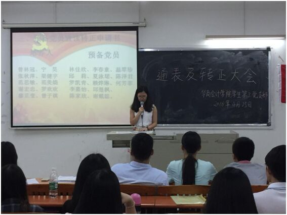 2016年4月25日晚上18:00-21:00,太阳成tyc9728集团学生第三党支部在厚德楼C409召开了本期入党重点发展对象的通表大会暨中共预备党员的转正会议。此次会议由纪检委员曾林冠同志主持,参加会议的有太阳成tyc9728集团学生第三党支部书记袁善福老师、支部59名学生党员以及20名入党重点发展对象。