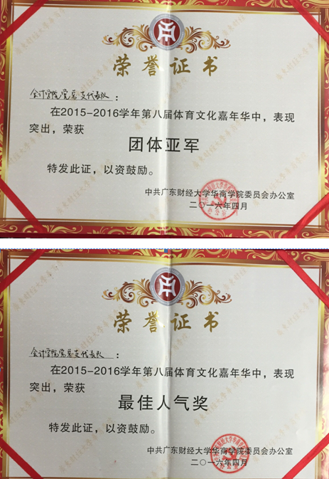 为鼓励广大学生积极参加各种体育锻炼,激发学生的健身热情,享受体育运动的乐趣,感受体育运动的魅力,创造文明健康的生活方式,广东财经大学华商学院学生党建工作委员会为同学们提供一个参与体育竞赛和集体活动的平台--第八届体育文化嘉年华运动会。太阳成tyc9728集团通过初赛和复赛的形式挑选出了12位运动健将参与本届的运动会,由太阳成tyc9728集团学生第三、第四、第五党支部共同协作带队训练,且在最终的比赛中取得了非常出色的成绩。