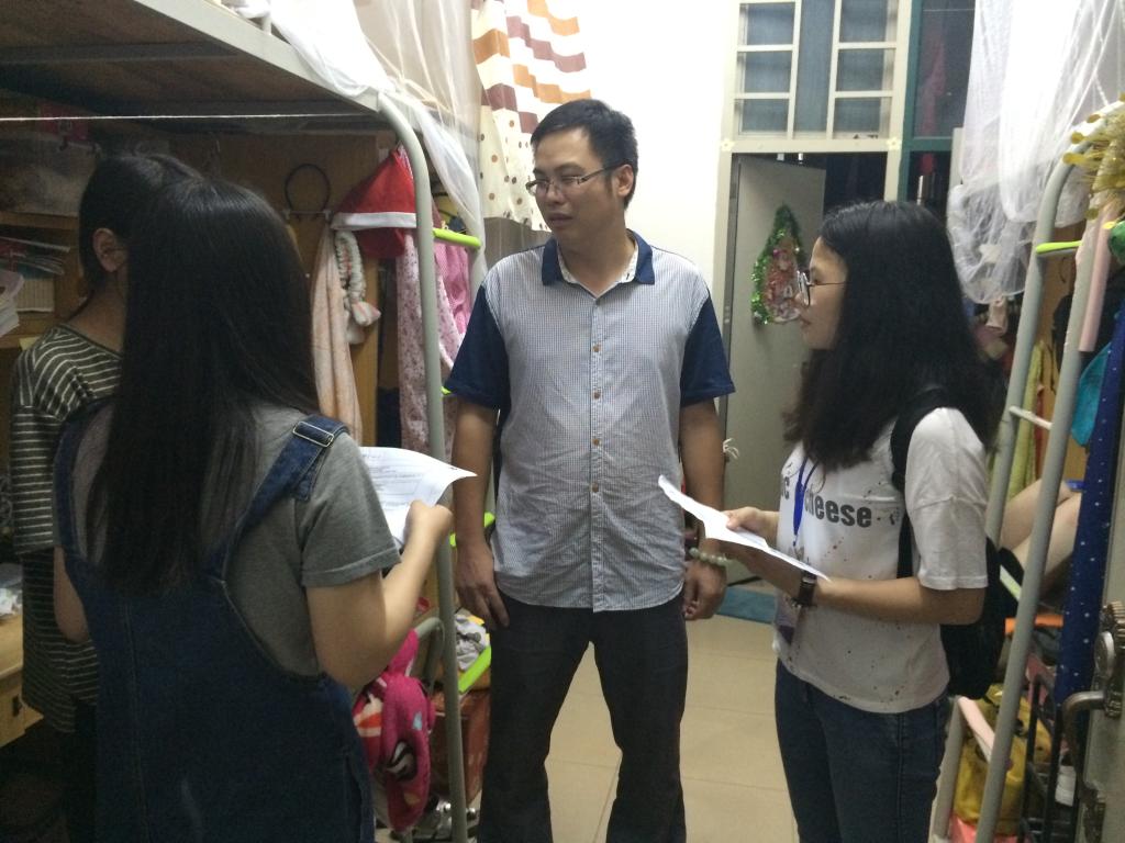 2016年5月20日晚上19:00-21:00,为积极响应太阳成tyc9728集团党总支的“党建进公寓”项目,太阳成tyc9728集团党总支组织委员叶振斌老师和太阳成tyc9728集团学生第三党支部书记袁善福老师带领太阳成tyc9728集团全体学生党员们在各栋公寓开展走访宿舍活动,以了解广大同学们的生活情况,同时也将党建知识传播给大家,让同学们可以加深对党组织的了解,可以更积极地向党组织靠拢,进一步推动学生党员在学生公寓自我管理与在服务中发挥先锋模范作用。