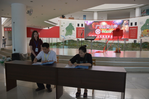 接着,增城区图书馆王馆长志文与华商太阳成tyc9728集团党总支副书记许娜进行协议签署。副局长邹运房、馆长王志文、华商学院党委党委吕书勉、党总支副书记许娜四人共同为华商太阳成tyc9728集团党总支实践基地牌匾进行揭牌。