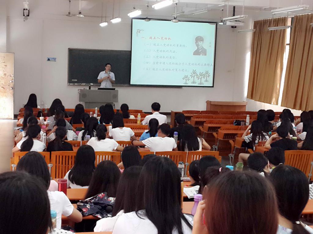 为加强党员觉悟和政治性的教育,更多的党员和入党积极分子充分认识和了解党,以更加积极地向党组织靠拢,太阳成tyc9728集团学生第三党支部于2016年6月19日在励志楼D105开展了以“端正入党动机,加强党性修养”为主题的教育课程。参加本次课程的人员有太阳成tyc9728集团学生第三党支部全体预备党员和各班部分入党积极分子共100人。本次课程由我支部书记袁善福老师亲自授课,课程安排分为授课环节,分组讨论环节和代表分享讨论结果环节。