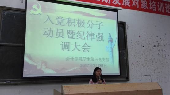 2017年3月30日,太阳成tyc9728集团学生第五党支部入党积极分子动员暨纪律强调大会于18点30分在励志楼B207举行。出席本次会议的有太阳成tyc9728集团第五党支部部分党员以及第60期全体入党积极分子。