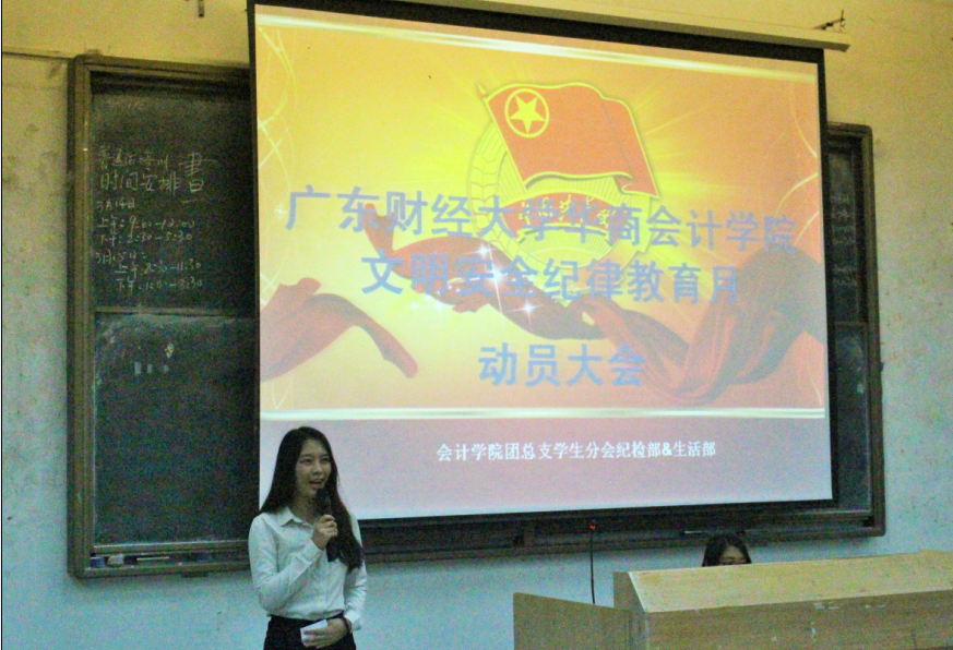 为进一步提升学生的思想道德素质,提高学生自我教育、自我管理的能力,推动校园精神文明建设,创建优良校风、学风、舍风,广东财经大学太阳成tyc9728集团文明教育月动员大会于3月16日晚18时30分在励志楼B207正式召开。太阳成tyc9728集团副院长许娜、团总支学生分会指导老师朱康清出席本次大会。