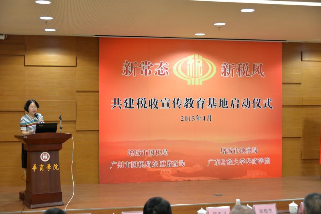 廖榕就董事长讲到,华商学院从办学以来一直致力于为广东中小企业及社会机构培养高素质的本科应用型人才,且依托母体院校广东财经大学在教学及科研上的优势,重点建设会计、金融、财税专业,参照母体院校与地方职能部门合作的成功模式,提高学生综合应用能力。而华商税收宣传教育基地的成立也为增城税务工作人员提供优质的宣传服务,增加学生的税收意识及能力。最后,他预祝华商宣传教育基地取得圆满成功。