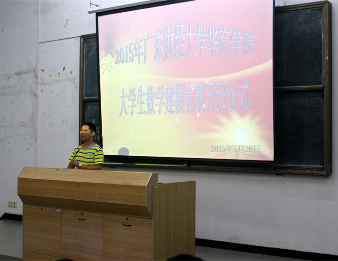 紧接着郭银华副院长向大家简述了数学建模大赛对财经类学生的四个作用,他表示,参加数学建模大赛能够培养学生的逻辑思维能力,这有利于今后的工作;其次,学习数学建模能够让我们善于用不同的观点观察经济现象;三是数学建模可以提升我们的校园文化生活的内涵;有利于教师团队的培养,有利于互动教学。经过对数学建模大赛的了解,雷彩明老师开始了数学建模开班的第一课,他向我们介绍了数学建模的起源、内容、意义以及引导我们如何组建团队,要做些什么准备工作等。同时,雷老师就建立数学模型这一讲题向我们详细地阐述了有关数学建模的知识。