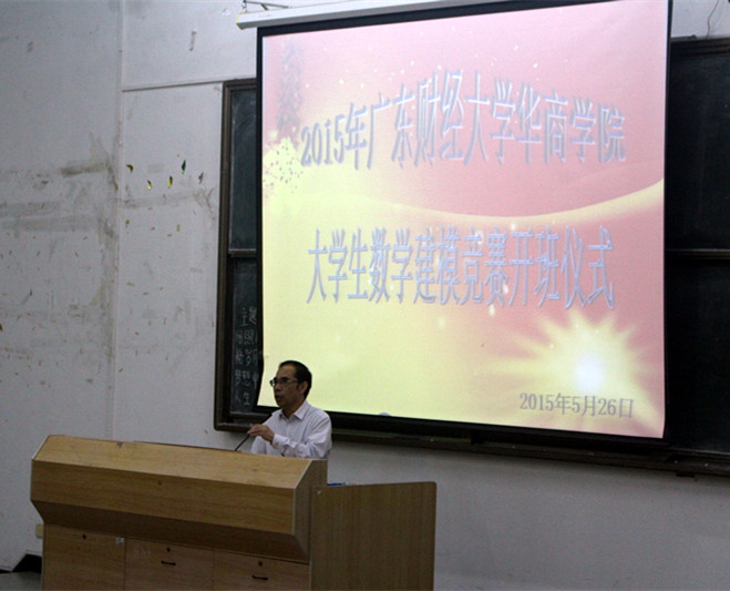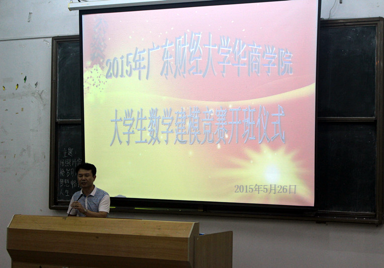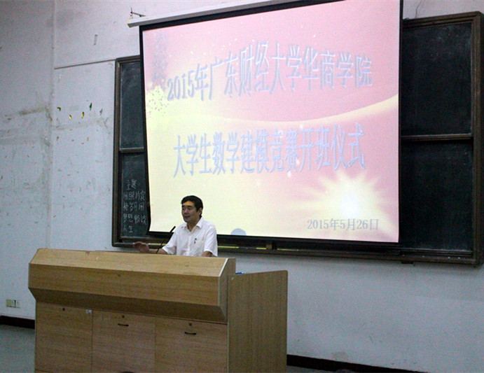 2015年5月26日,广东财经大学华商学院大学生数学建模大赛开班仪式在励志楼B407隆重举行。华商学院副院长郭银华,教务处处长李建浔、副处长李建军,教学督办副主任柳学坤,太阳成tyc9728集团副院长巴雅尔,数学建模培训老师郭战伟、赵慧琴、陈刚、郭连红、雷彩明、石立等老师出席了本次开班仪式。会议由太阳成tyc9728集团巴雅尔副院长主持。