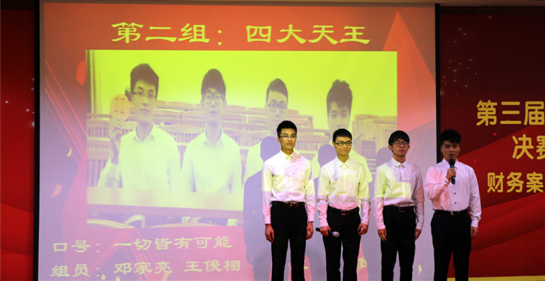 决赛分为三个部分展开2min团队自我展示,10min策划书ppt展示以及5min评委答辩环节,对选手的专业水准和语言表达都有较高的要求。6组参赛队伍围绕“美邦服饰”、“康美药业”、“泛海控股”三个财务案例选取一个进行周密详细的阐述与分析。他们专业的姿态,自信的讲演,独到的分析,令各位评委老师频频颔首认同,使在场观众深深为之折服。