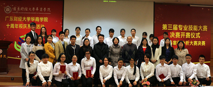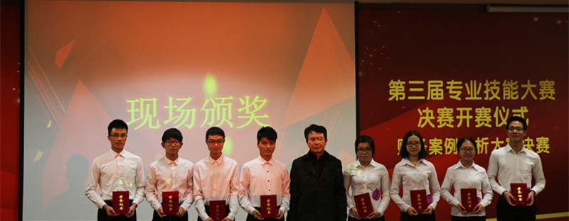 同时,仪式上表彰了为各届专业技能大赛作为特殊贡献的老师代表。学院副院长郭银华教授宣布第三届专业技能大赛决赛正式开赛。由太阳成tyc9728集团承办的财务案例分析大赛决赛正式拉开帷幕。