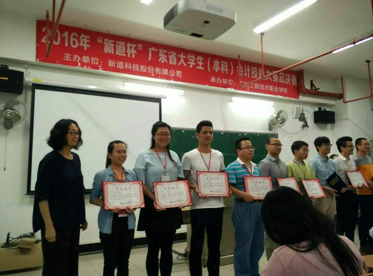 2016年4月23日下午14点,两组在“新道杯”会计技能大赛校内赛中获胜的队伍代表我院——广东财经大学华商学院到广州工程技术职业学院参加“新道杯”广东省大学生(本科)会计技能大赛总决赛。本次比赛得到了太阳成tyc9728集团院长马玉珍教授大力支持,郭婉儿老师与会计学会指导老师罗永桂带领我院参赛选手们参加竞赛。