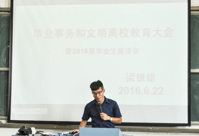 2016年6月22至23日,华商太阳成tyc9728集团毕业事务和文明离校教育大会暨2016届毕业生座谈会分别在励志楼B407、D308、D408、D208举行,共七场,杨烨翰、朱康清、杨李军、李冠恩、叶颖瑜、梁银雄、罗永桂老师以及太阳成tyc9728集团2016届全体毕业生欢聚一堂,依依话别,共叙情谊。