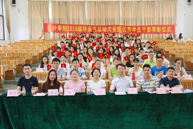 最后,杨李军老师宣读了《广东财经大学华商太阳成tyc9728集团关于表彰优秀学生干部的决定》。在激昂欢快的乐曲声中,太阳成tyc9728集团领导为2016届优秀学生干部颁发了荣誉证书。在这庄严而又光荣的时刻,学子们脸上洋溢着灿烂的笑容,掩饰不住内心的喜悦,井然有序地列队登上主席台接受与领导老师的合影留念,一次握手、一个微笑、一声祝福,收获的喜悦在这一刻悄然定格,成为毕业生记忆中最美好的映像。