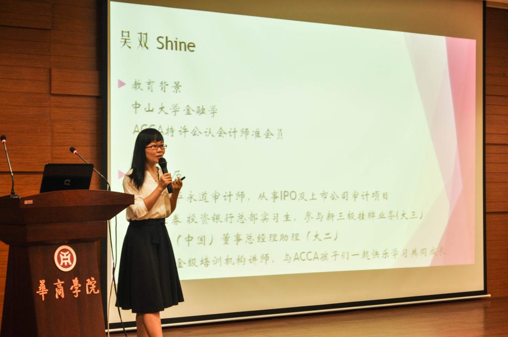 随后,毕业于中山大学的吴双用她自己与ACCA结缘的故事,解释了ACCA的含义并分享了她因ACCA收获初次实习机会以及毕业时工作证书双丰收的精彩经历。