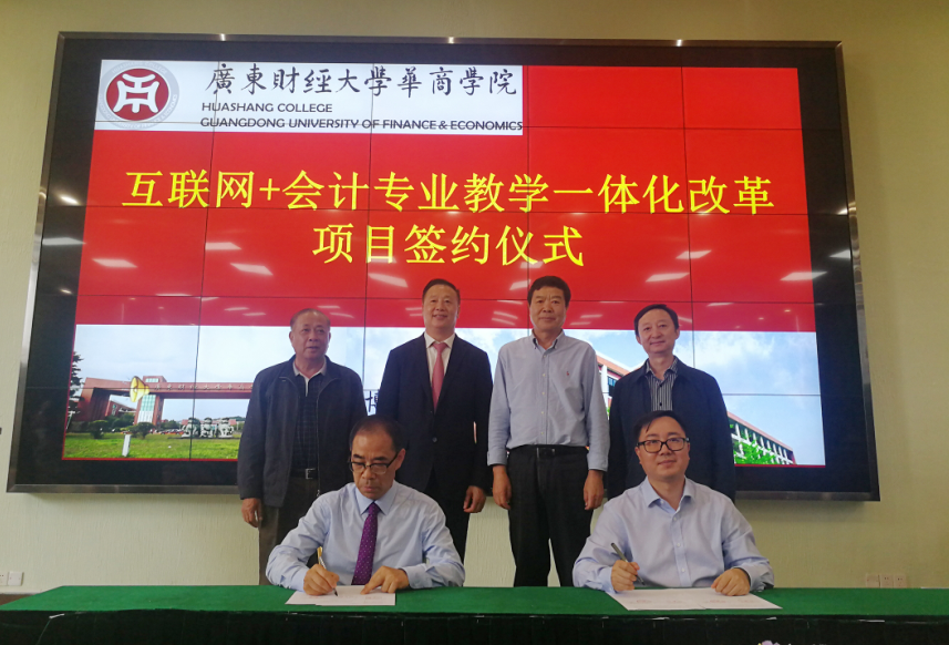 随后,广东财经大学华商学院代表郭银华教授与正保远程教育公司代表刘温泉副总裁就互联网+会计专业教学一体化改革项目正式进行签约。这标志着华商学院成为了全国第八所互联网+会计专业教学一体化改革试点学校,也标志着华商学院办学水平与办学层次的进一步提高。
