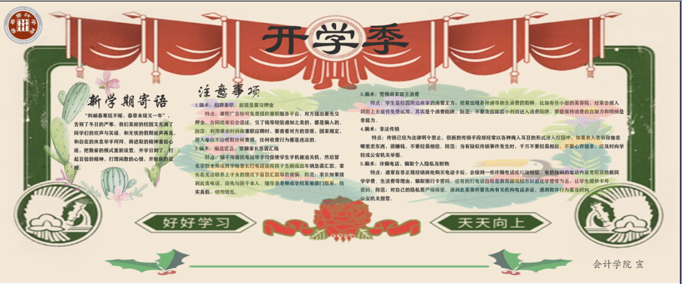 返校期间注意交通安全,提高安全意识,保障自身人身安全和财产安全。