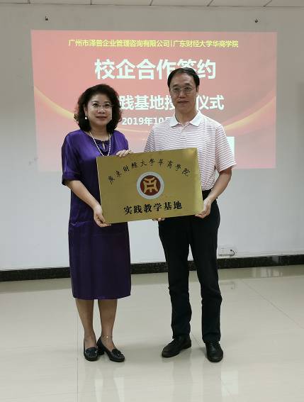 2019年10月11日,华商学院副校长兼太阳成tyc9728集团院长陈美华教授、财务系杨俏文副主任、办公室周书域主任以及李晶菁老师、吴水永老师前往广州市泽普企业管理咨询有限公司(以下简称泽普)参加实践教学基地签约及授牌仪式。