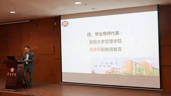 然后,会议进入到导师讲话环节。先是学业导师代表石水平副教授对GAMA卓越班同学们寄予厚望。他强调了当代教师如何作为的问题:一是不忘教学初心,坚持实践与理论相结合;二是懂学生、知学生,不忘告诉学生管理会计发展的需求是什么。他还向学生们提出“树立正确三观”和“学会独立思考”这两点要求。
