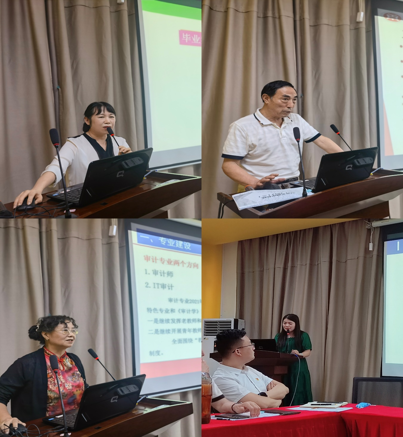 随后,教学系进行工作汇报。会计系主任崔莉教授、财务系主任陈云教授、审计系主任郭秀珍教授、税务系副主任李志凤老师从日常教学管理、学科专业建设、教研科研成果、后续工作计划等方面对教学系工作进行汇报。