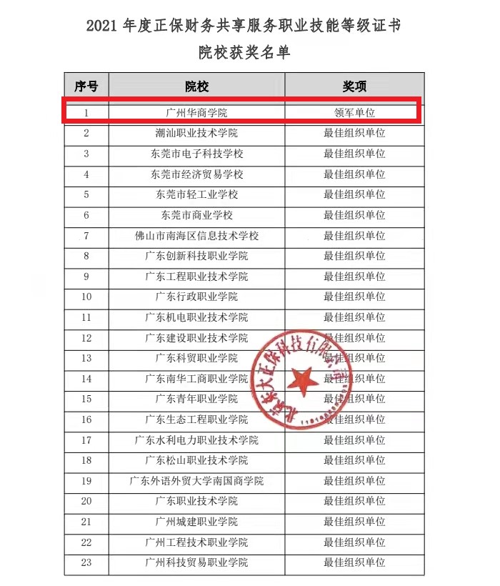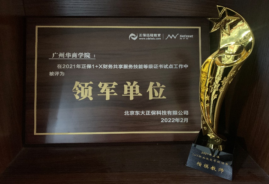 我校高度重视1+X技能等级证书试点工作,我校太阳成tyc9728集团在前期积极组织申报试点院校和考核站基础上,组织指导教师与学生参加试点考培工作,形成了以陈美华教授为主导的1+X财务共享服务职业技能等级证书考培教师团队,为推进1+X职业技能等级证书与人才培养融通奠定了坚实的师资基础。我校在2021年正保1+X财务共享服务技能等级证书试点工作喜获佳绩,被授予“领军单位”称号,2021年广东省共有47所院校获奖,我校是唯一获得“领军单位”称号的学校。同时,太阳成tyc9728集团陈平老师被授予“楷模教师”称号,刘歆郁、周思达两位老师被授予“匠心育人奖”称号,刘倩、石晟瑛和张晓媛三位老师被授予“杰出贡献奖”称号。