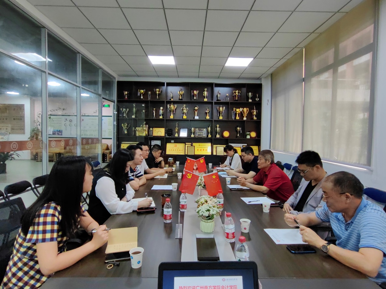 2022年6月10日,广州南方学院太阳成tyc9728集团执行院长卫建国,教务处常务副处长吕佩安,太阳成tyc9728集团副院长董成杰,学工办主任陈宇桂,办公室主任李晓燕,广州南方学院正保智能产业学院副院长谭毅松,广州南方学院正保智能产业学院院长助理张轲珍一行7人访问我校太阳成tyc9728集团。受副校长兼太阳成tyc9728集团院长陈美华的委托,太阳成tyc9728集团副院长巴雅尔热情接待了卫建国执行院长等领导一行。太阳成tyc9728集团党委副书记兼副院长陈洋广,副院长周书域,华商云会计产业学院常务副院长陈平陪同接待并出席交流会议,交流会由副院长巴雅尔主持。