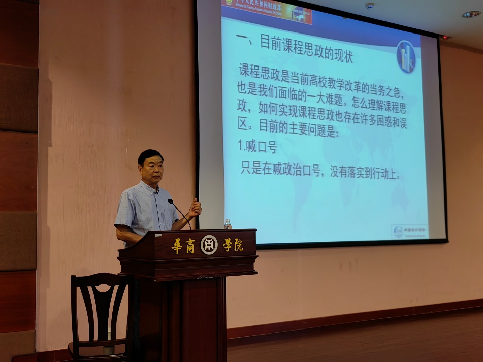 2022年9月27日下午3点,中国会计学会副会长、tyc太阳成9728集团特聘教授刘永泽应邀莅临我校会议中心四楼报告厅给太阳成tyc9728集团师生作了主题为“关于课程思政的几个问题”的讲座。华商学院副校长兼太阳成tyc9728集团院长陈美华教授、太阳成tyc9728集团杨旻副院长、周书域副院长以及学院多位教师和学生参加了此次讲座,讲座由太阳成tyc9728集团副院长杨旻教授主持。