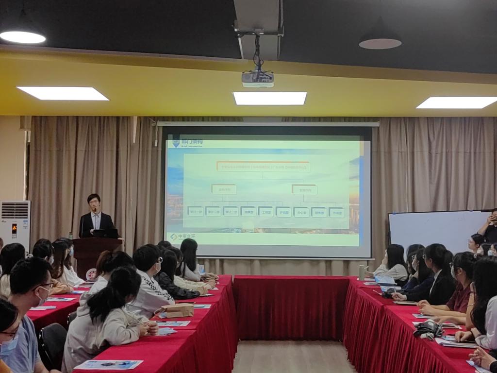 招聘前,中审众环进行了宣讲,王兵副所长从事务所发展历程、业务类型、客户特点、人员需求、工作内容、发展前景及工资待遇等方面进行了详细的介绍。王所提到,中审众环是首批大型的事务所之一,在全国拥有三十多家分支机构,其中广东分所是华南区域最大的分支机构之一。王所着重向同学们介绍了中审众环的工作环境及职业发展前景,强调中审众环重视员工培训及员工福利,是一支真正符合中国国情,并具有行业领先优势的人才团队。