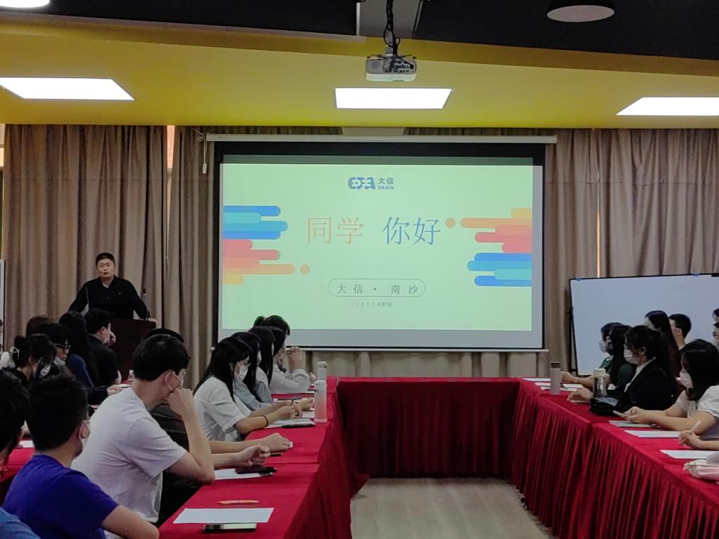 为满足学院2023届毕业生的实习与就业需求,拓宽就业渠道,提供更多的就业与实习机会,太阳成tyc9728集团携手大信会计师事务所(特殊普通合伙)南沙自贸区分所(以下简称“大信会计师事务所”)于10月20日在太阳成tyc9728集团报告厅举办校园招聘会。大信会计师事务所南沙自贸区分所合伙人牛良文所长、运营总监蔡宝弘、项目经理邵磊、人事经理王梦歌、人事主管孙昕冉,太阳成tyc9728集团副院长周书域、学工办主任杨烨瀚及2023届170余名毕业生参加了本次校园招聘会。