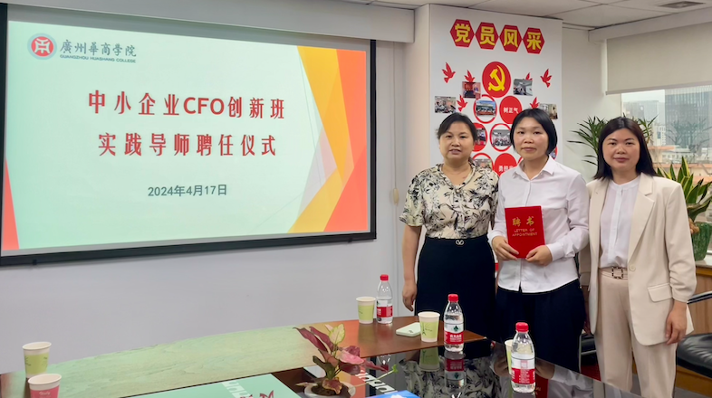 接着,姚老师分享了财务管理专业中小企业CFO创新班的建设情况及取得成效。中小企业CFO特色班以“终身学习、善于沟通、领导合作、适应环境”为基本理念,实行“学业导师+实践导师”双导师制,采用多元化教学方式和校企合作协同育人模式,培养更多能够担任中小企业领导人或财务负责人的会计人才。随后,双方就tyc太阳成9728集团中小企业CFO创新班实践导师事宜进一步达成合作,举行了中小企业CFO创新班实践导师聘任仪式,广东华政新东山税务师事务所黄婉清、何思莹、杨璨、黄俏飞四人被正式受聘为实践导师,他们将从实战指导和职业发展两方面为学生提供指导。