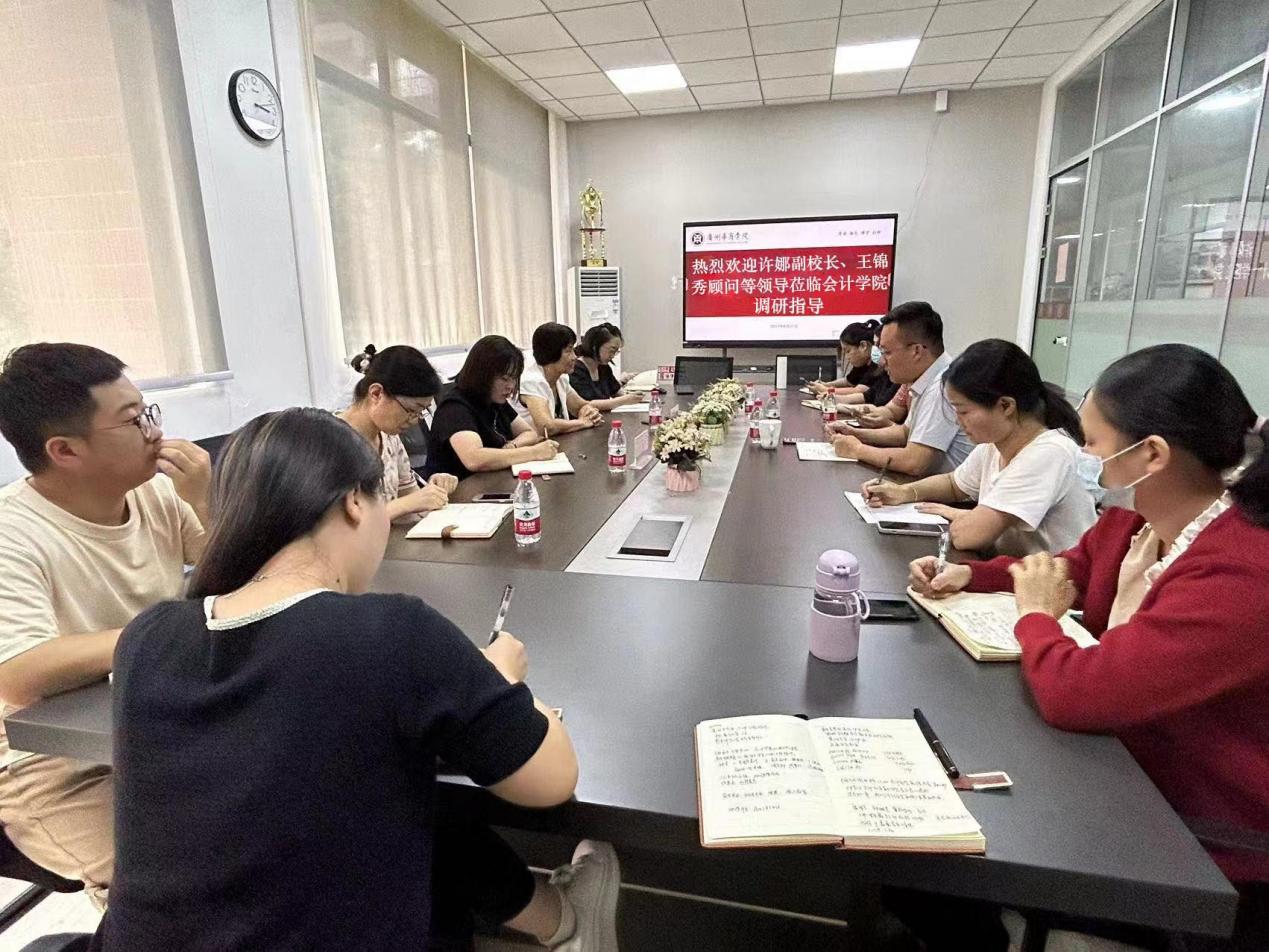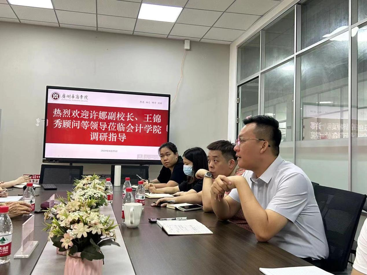 为了解学院学生工作情况,落实学校“十大工程”,推动学生工作高质量发展,2024年6月25日下午,许娜副校长、王锦秀顾问、学生处副处长马卉芳深入太阳成tyc9728集团开展调研工作。太阳成tyc9728集团党委副书记兼副院长陈洋广,学工办副主任杨烨瀚,各年级主任以及广州校区全体辅导员参加本次调研活动。本次调研交流会在太阳成tyc9728集团会议室举行,由陈洋广副院长主持。