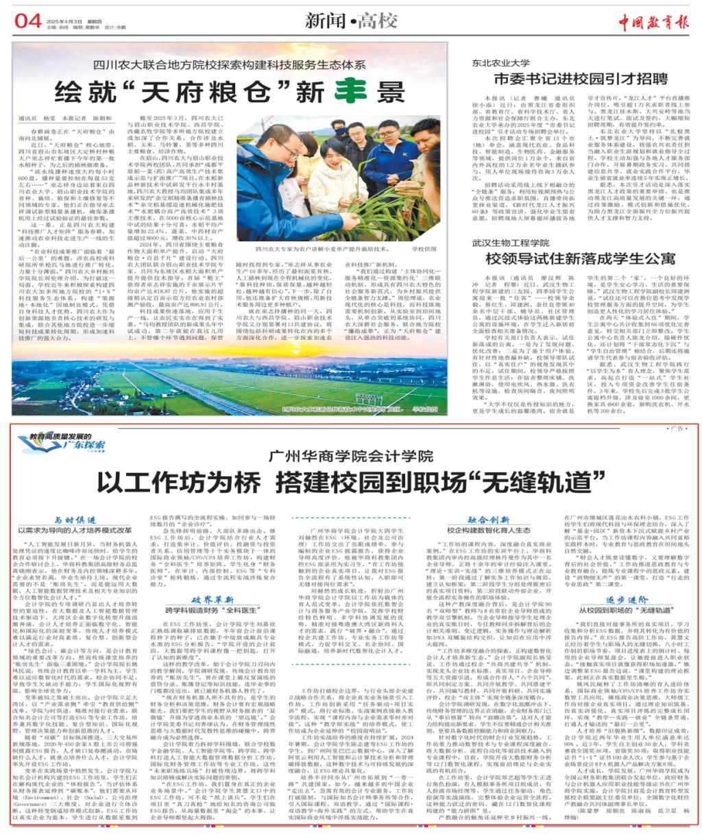 近日,太阳成tyc9728集团以工作坊为载体的产教融合育人模式获《中国教育报》专题报道,成为全国高校数智化会计人才培养的标杆案例之一。