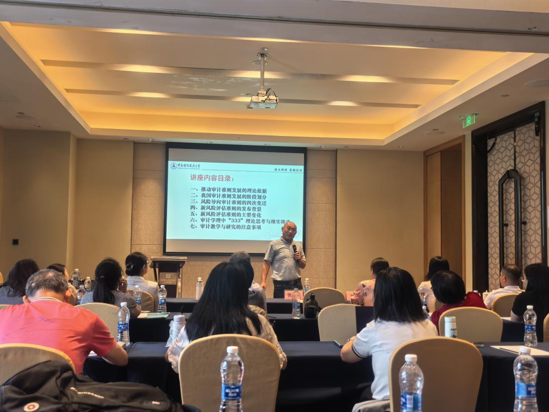 主旨报告环节,中南财经政法大学张龙平教授带来了《现代风险导向审计准则的变迁及启示》。张教授首先回顾了审计准则从账项基础审计到制度基础审计,再到风险导向审计的发展历程,强调了风险评估在现代审计中的核心地位。他详细解读了新准则的主要变化,包括风险评估程序的细化、风险应对措施的强化,以及对固有风险和控制风险的深入分析。张教授还提出了审计学理中的“333”理论,即“3MM”理论、“3难题”实践和“3五个”要素,为审计教学与研究提供了新的视角和方法。最后,张教授强调了审计教学中培养学生的知识力、时空观和环境性的重要性,以及审计研究中提升研究质量和价值的必要性。此次分享为审计专业教师提供了宝贵指导,有力推动了我校审计学科的持续发展与专业水平提升。